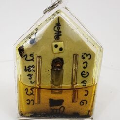 The amulet is infused with Nam Man Prai (magical oil) — a traditional consecrated fluid believed to enhance the flow of charm, attraction, and good fortune — and encased in clear resin to preserve both its artistry and energetic potency.