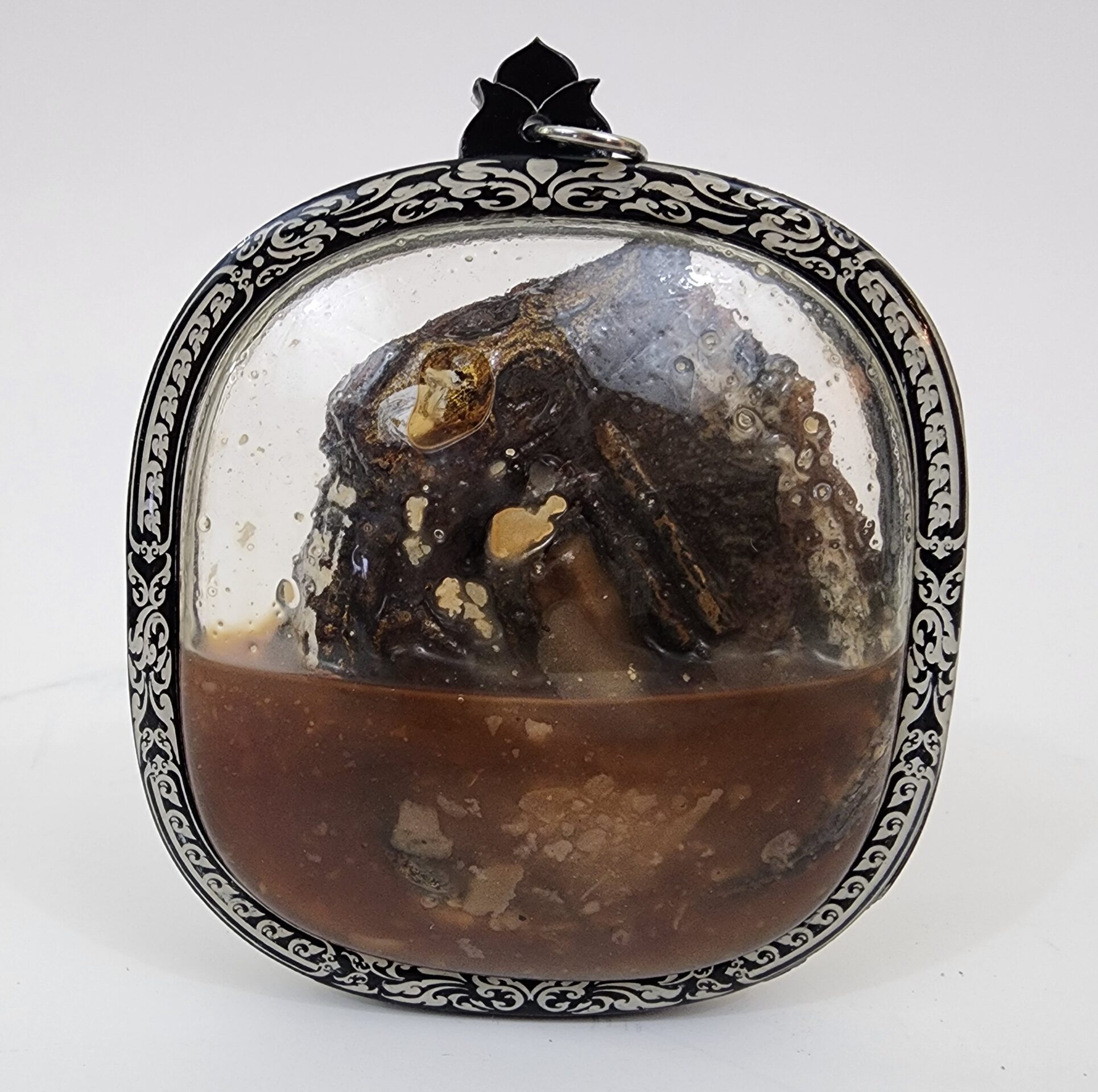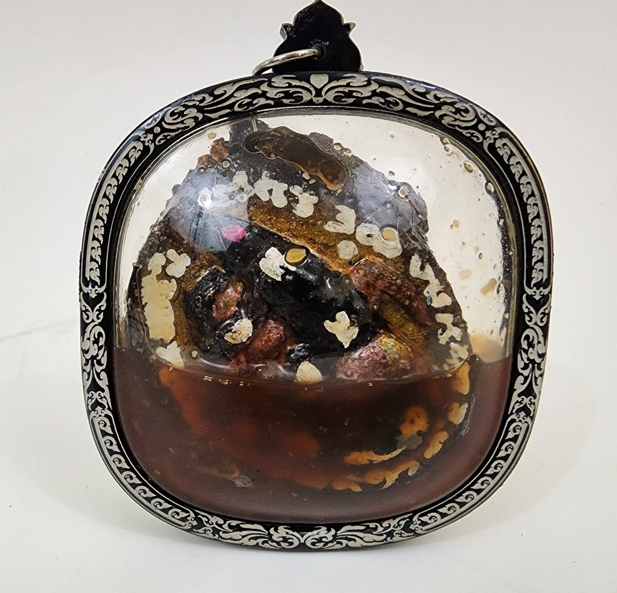 Created and consecrated by Aj Tom, a practitioner known for deep prai work, this amulet is built in a large format to manifest presence. Designed for collectors and serious practitioners who wish to engage with potent and even “dark” protective/empowerment energies, it is not for the faint-hearted.